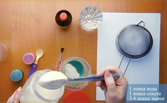 1. Нам понадобится: ГУАШЬ, манка, спирт, вода, ложка, сито.